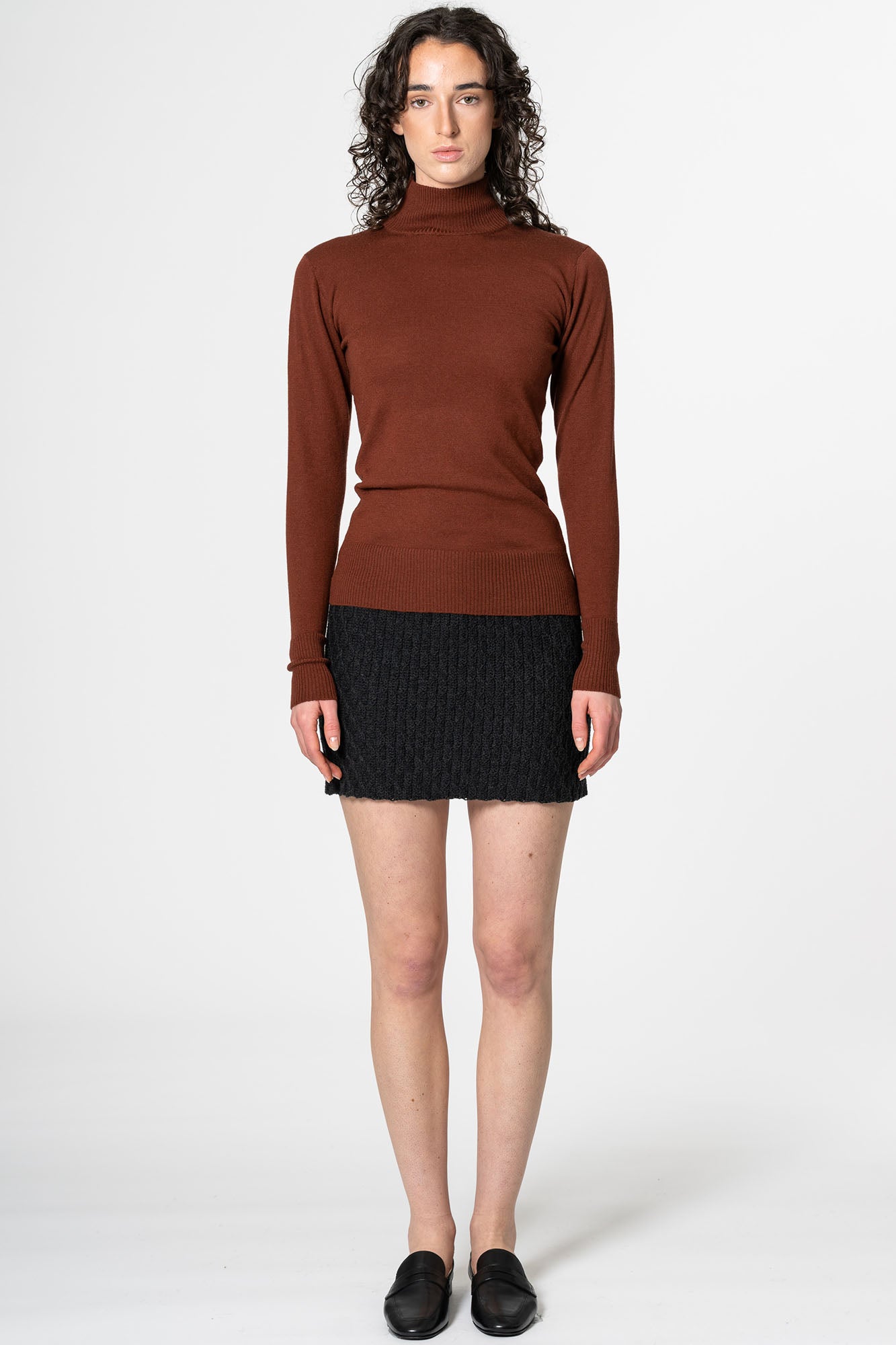 The mini skirt by Dinadi looks great with tights during the winter. Made entirely from merino wool, this hand-crocheted skirt will be a versatile piece in your wardrobe. Dinadi does not use the practice of mulesing.
