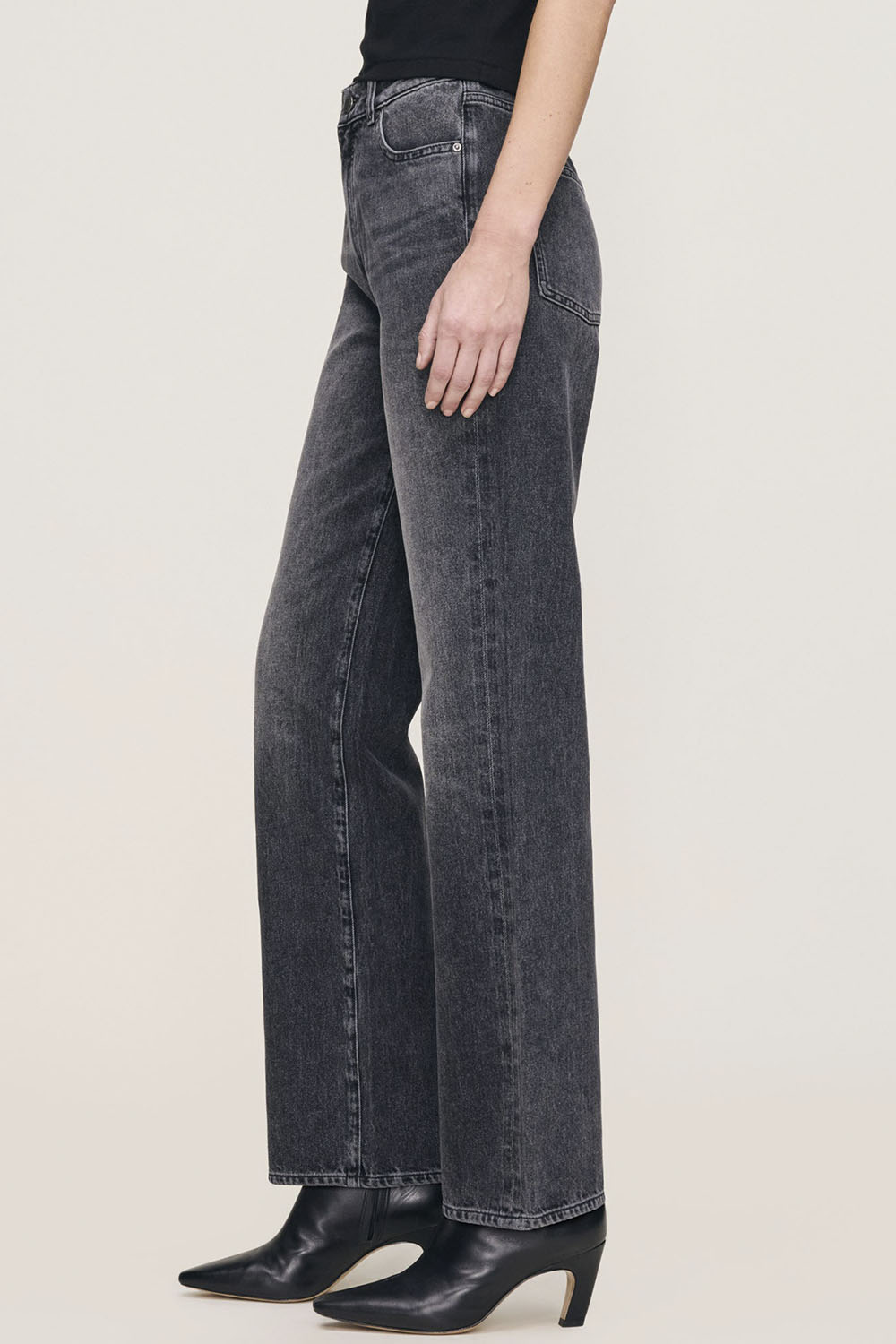 Karmine is a high rise stretch straight leg denim with an easy and relaxed fit. Nightshade is a washed black denim, featuring silver hardware and tonal stitching. This style features DL1961’s SculptSystem, an innovative fit-engineering technology that sculpts the waist, seat and thigh for a perfect fit.