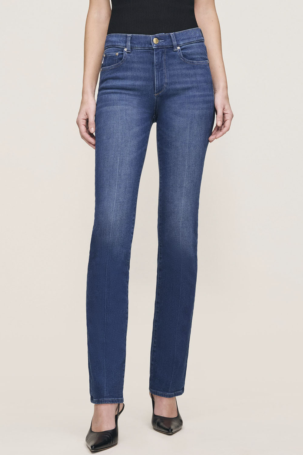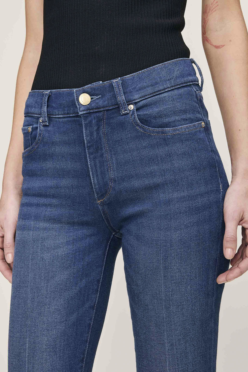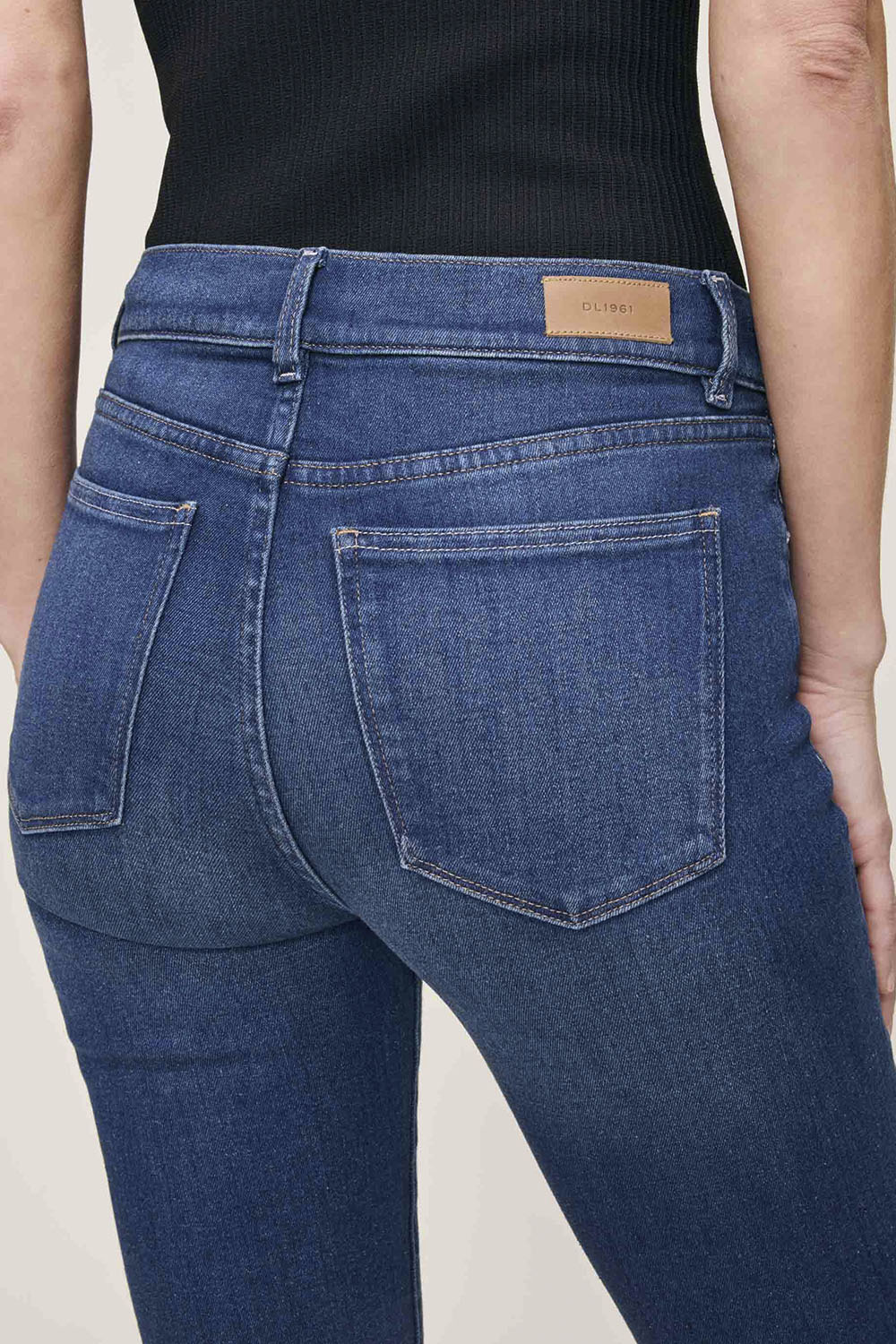 Mara is a mid-rise straight leg denim with DL1961’s Instasculpt™ technology that smooths and sculpts for the perfect fit. Santa Monica is a bright, mid-indigo wash with a worn in-look and features silver shank, copper rivets and khaki stitching.