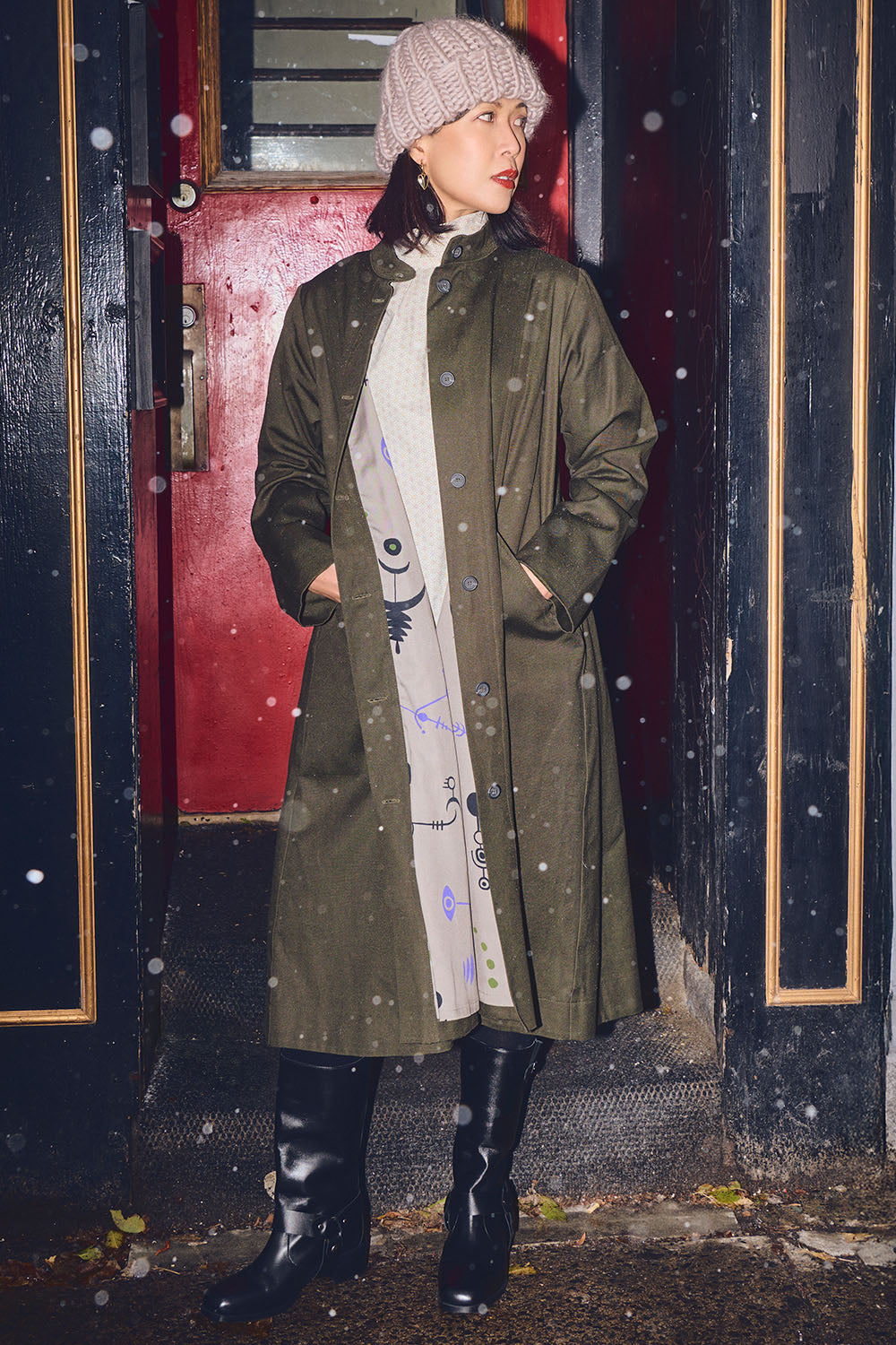 Inside, you'll find a unique touch—Jen’s exclusive Crop Circle print lining, adding an artistic element to this minimalist design. It just may be the perfect transitional coat.