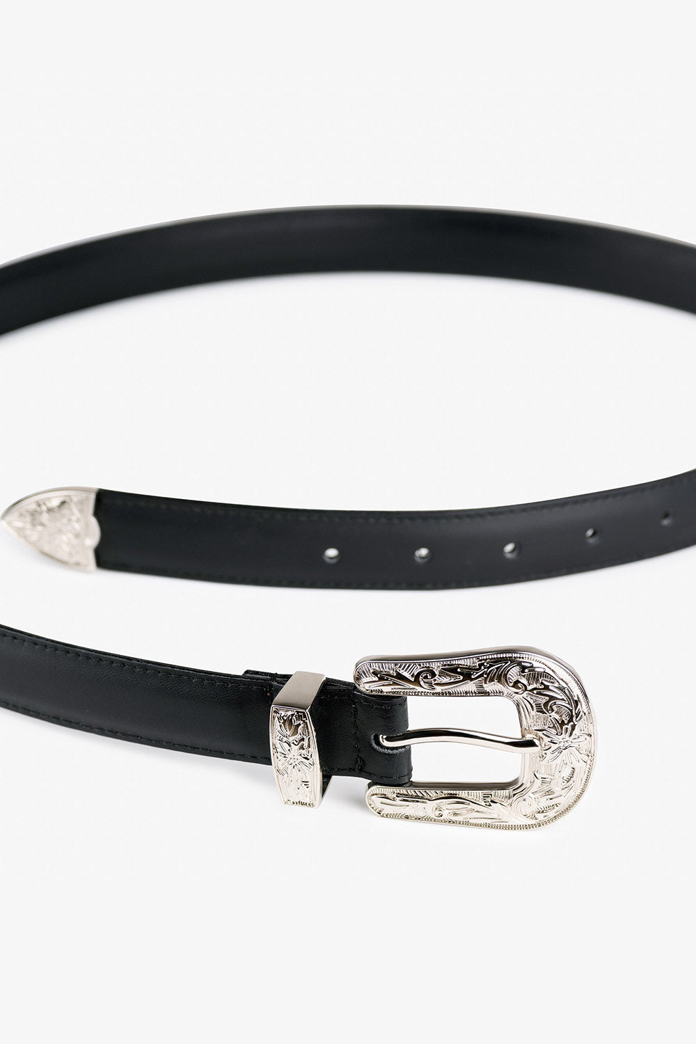 The Country belt , made with premium black leather and wide engraved silver buckle is inspired by the Calgary Stampede.
