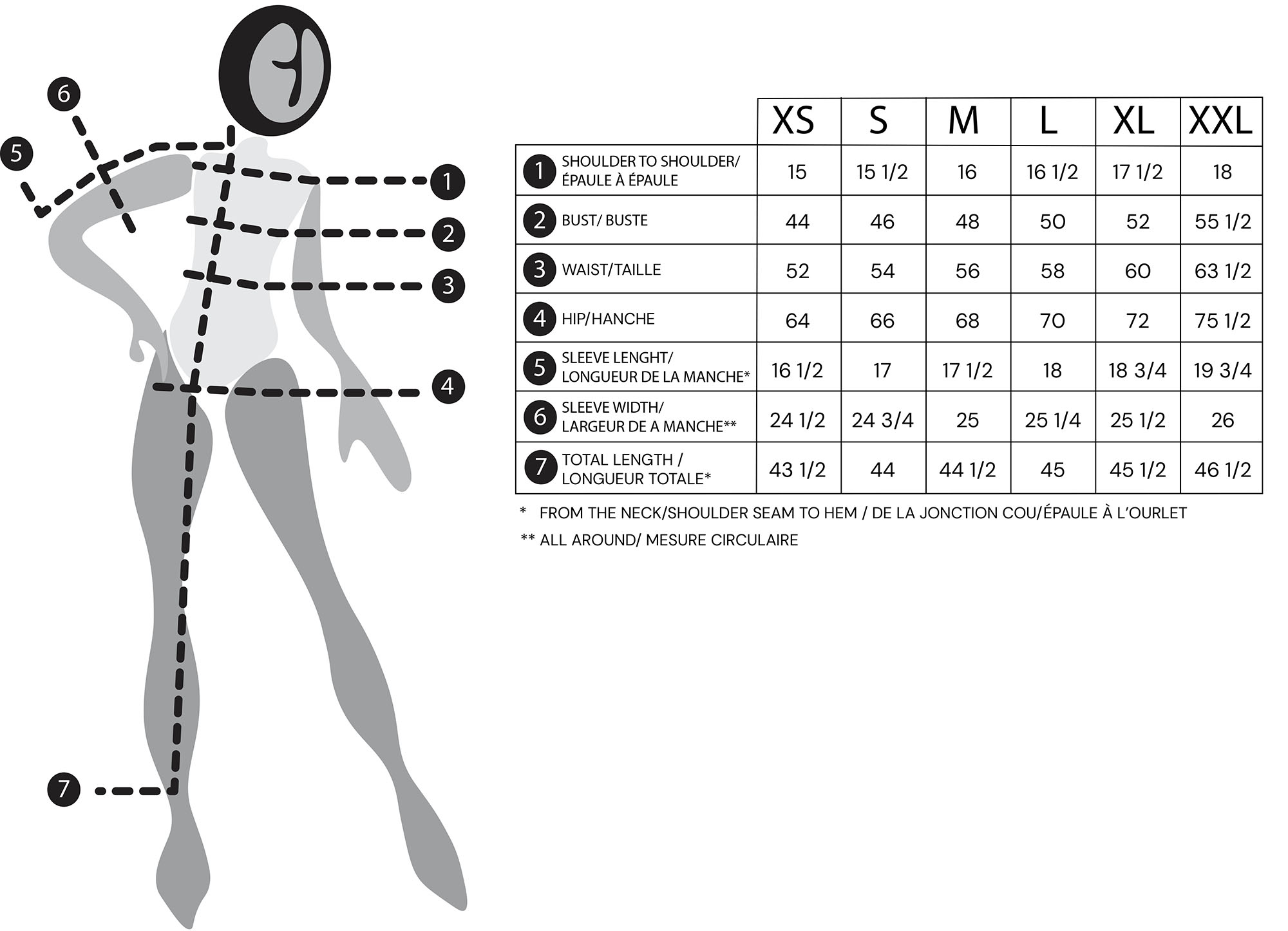 • Sizes XS – XXL.