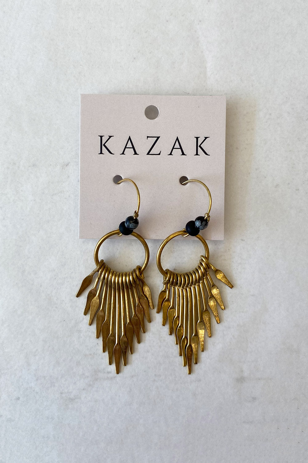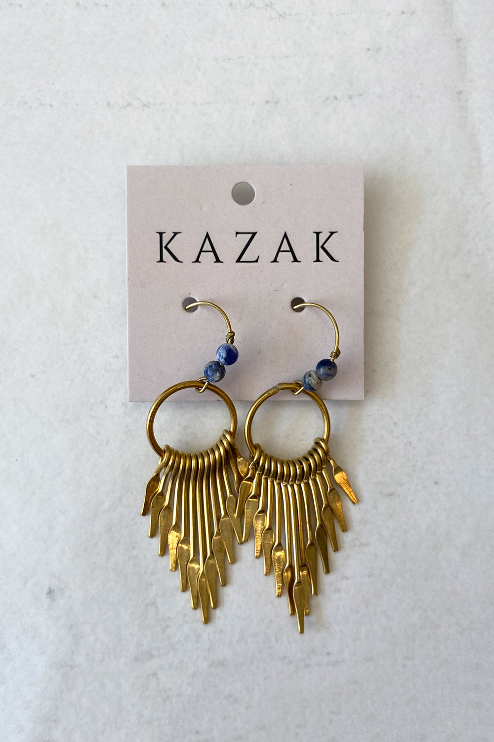 Handcrafted brass earrings with semi-precious stone.