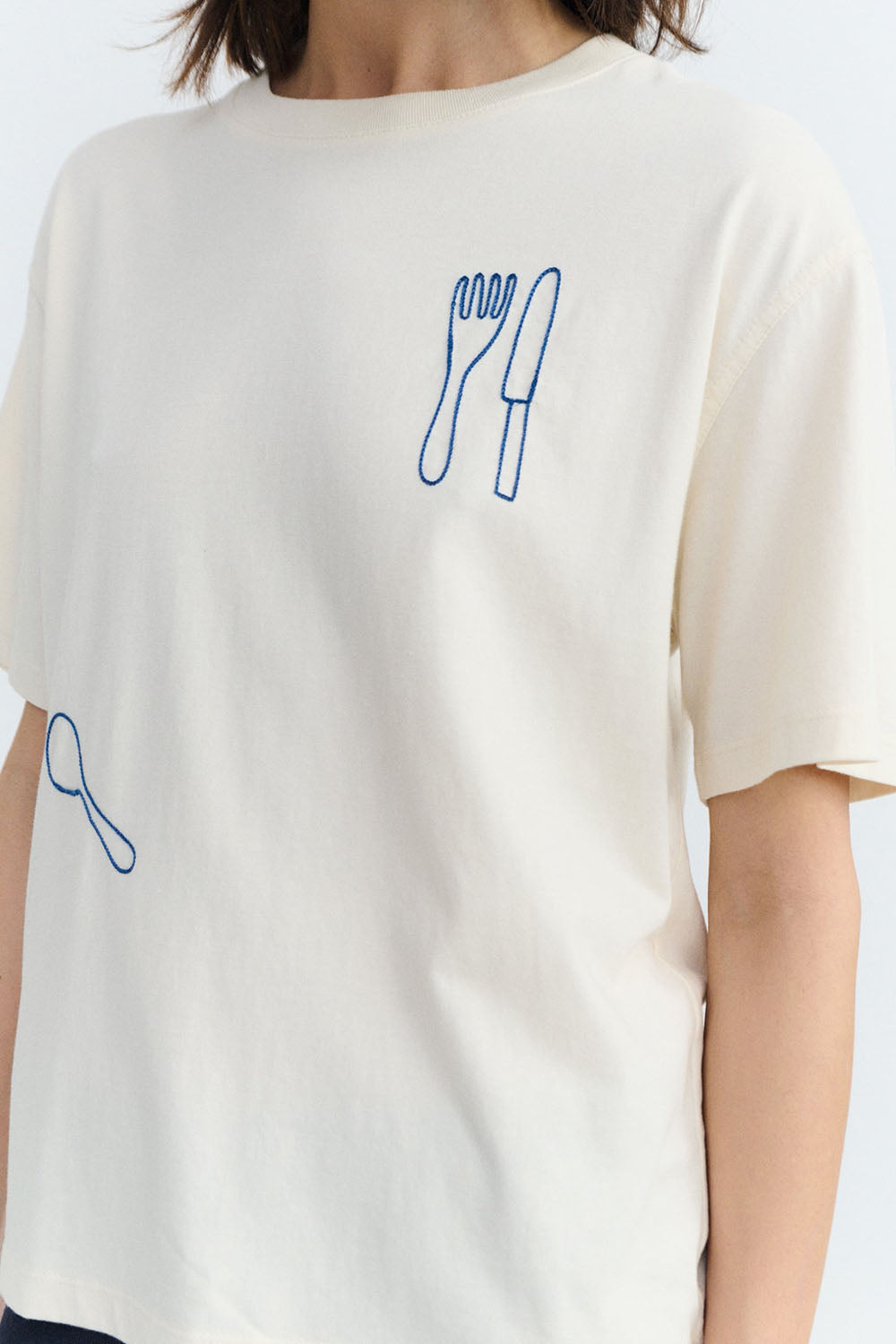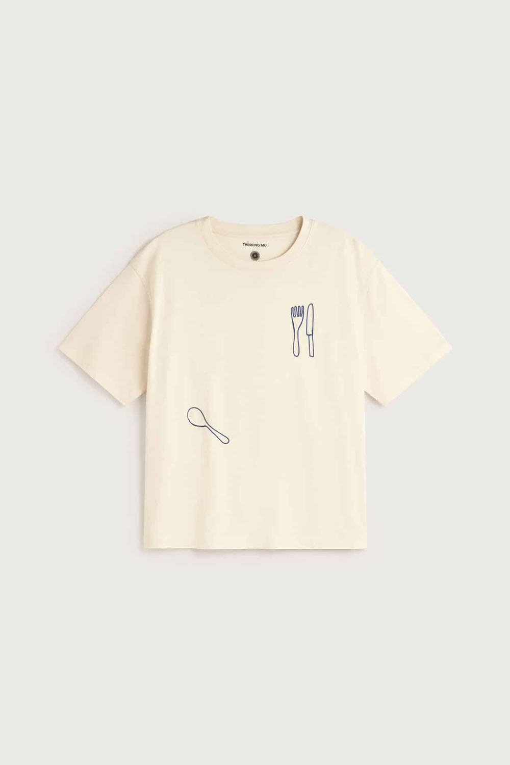 The Lucia T-shirt by Thinking Mu is made from organic cotton and is the perfect summer staple! Its subtle graphic detail of utensils adds a playful touch to any everyday outfit.