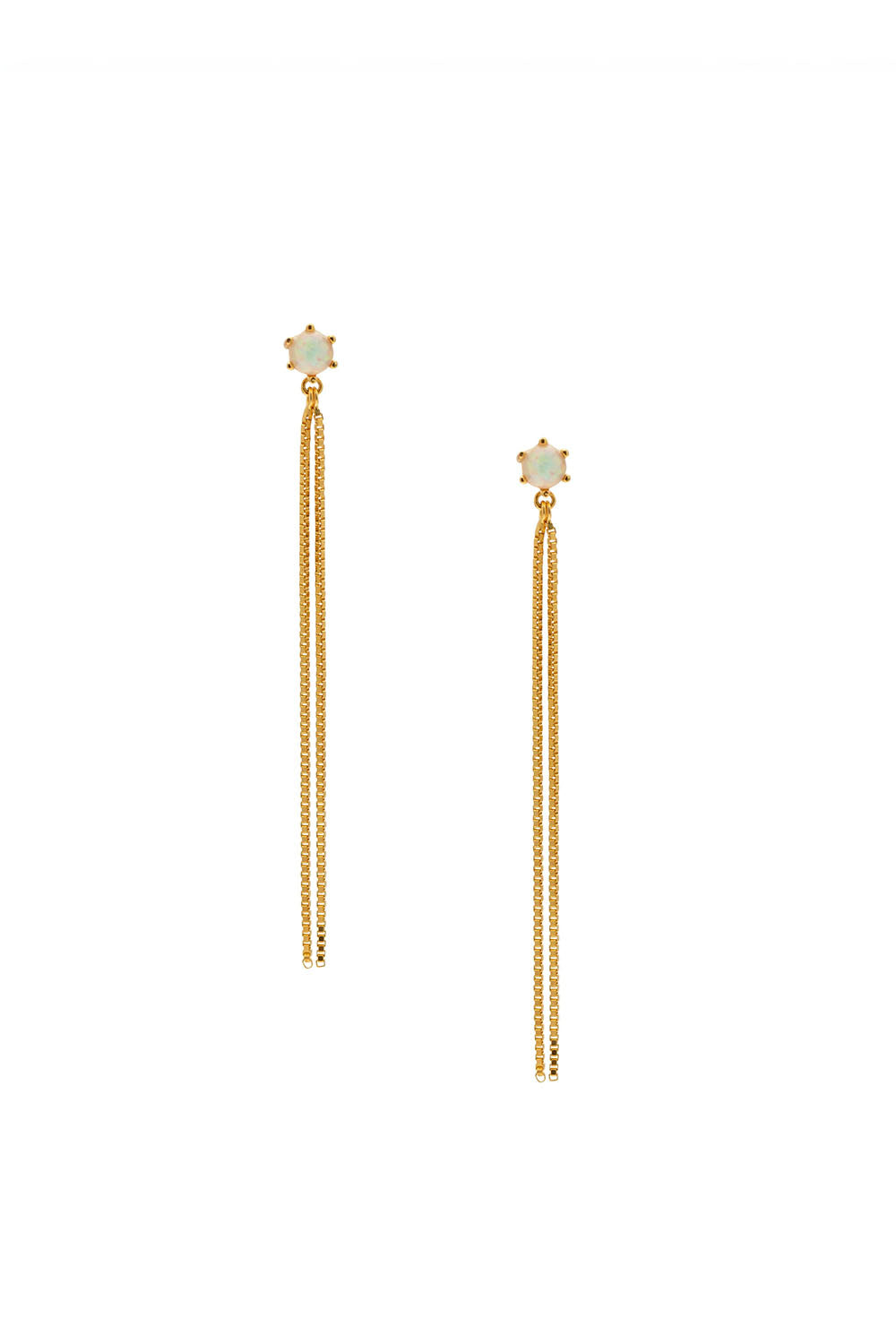 The Ava is a delicate chain earring with lab-grown opal stud. Perfect for daily wear or dressing up for special occasions.