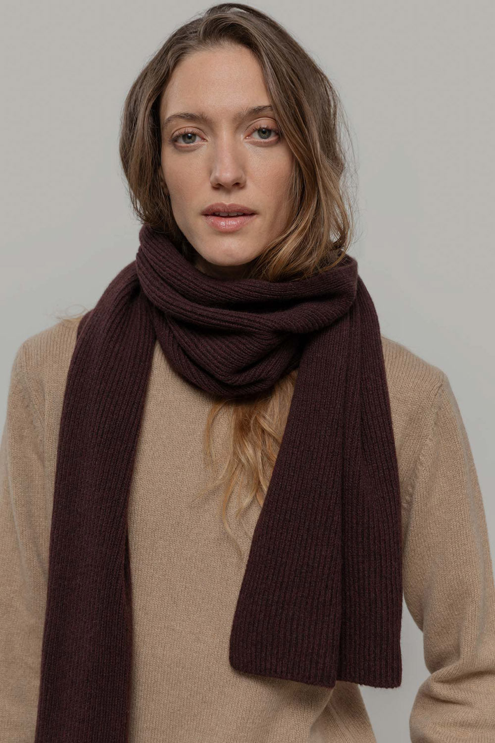 The Federico scarf is made with recycled cashmere and recycled wool. It has a lovely rib texture to it and easily wraps around your neck. Available in beautiful bright colours.