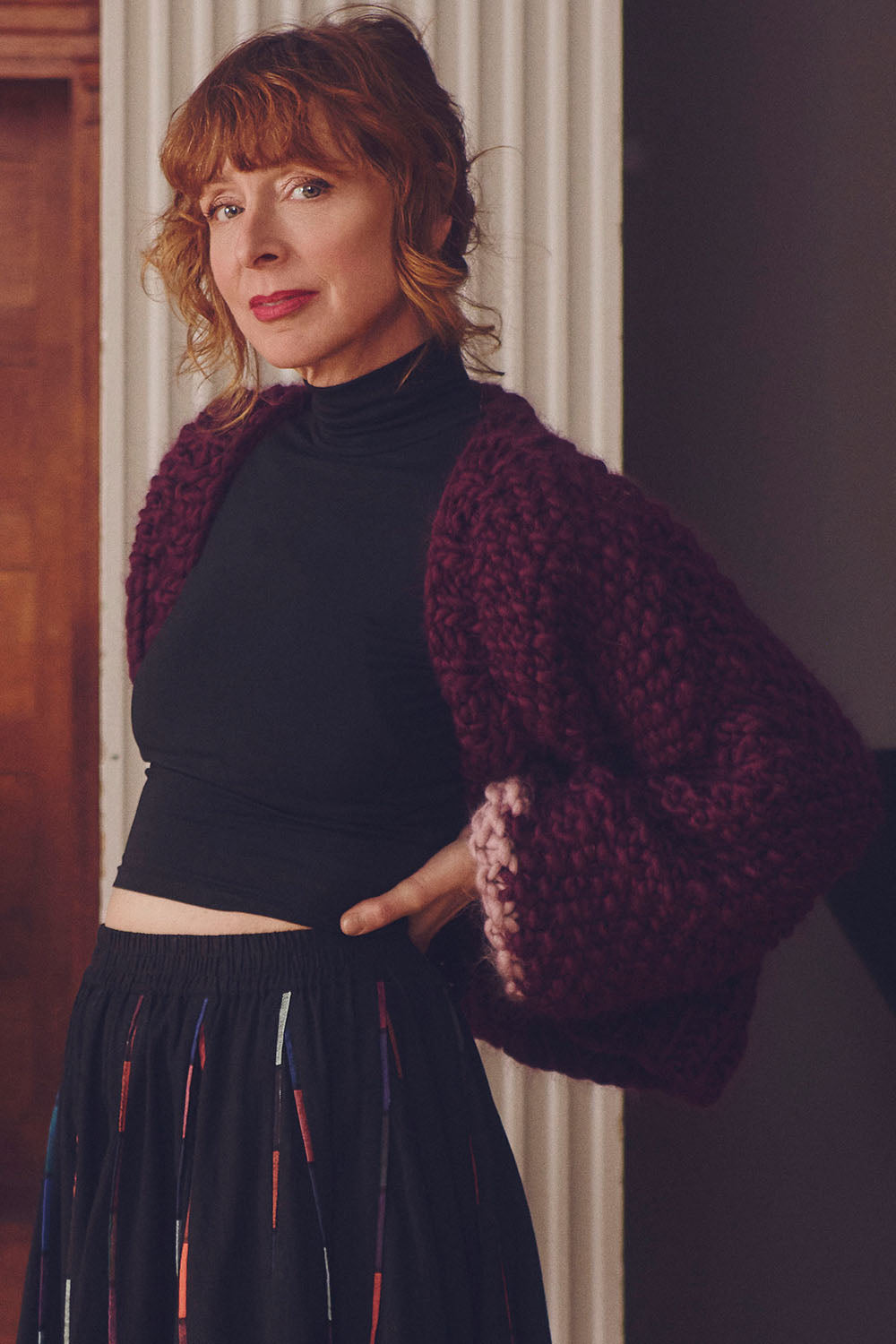 A soft and cozy chunky knit merino wool cardigan with contrast cuff. This style features an oversized fit, dropped shoulders and relaxed wide sleeves.