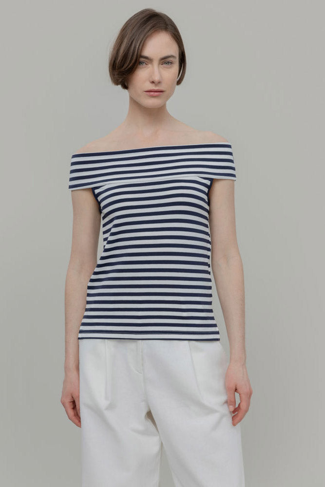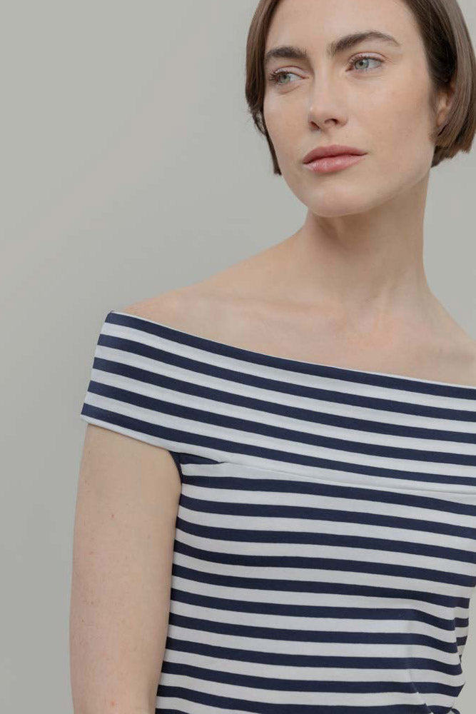 This little retro-style top makes you want to ride a Vespa, a silk scarf around your neck! Whether you're going for a Hepburn-inspired look or want to modernize it with more structured pieces, it's a must-have this summer. Please note that it's really cut to leave the shoulders bare.