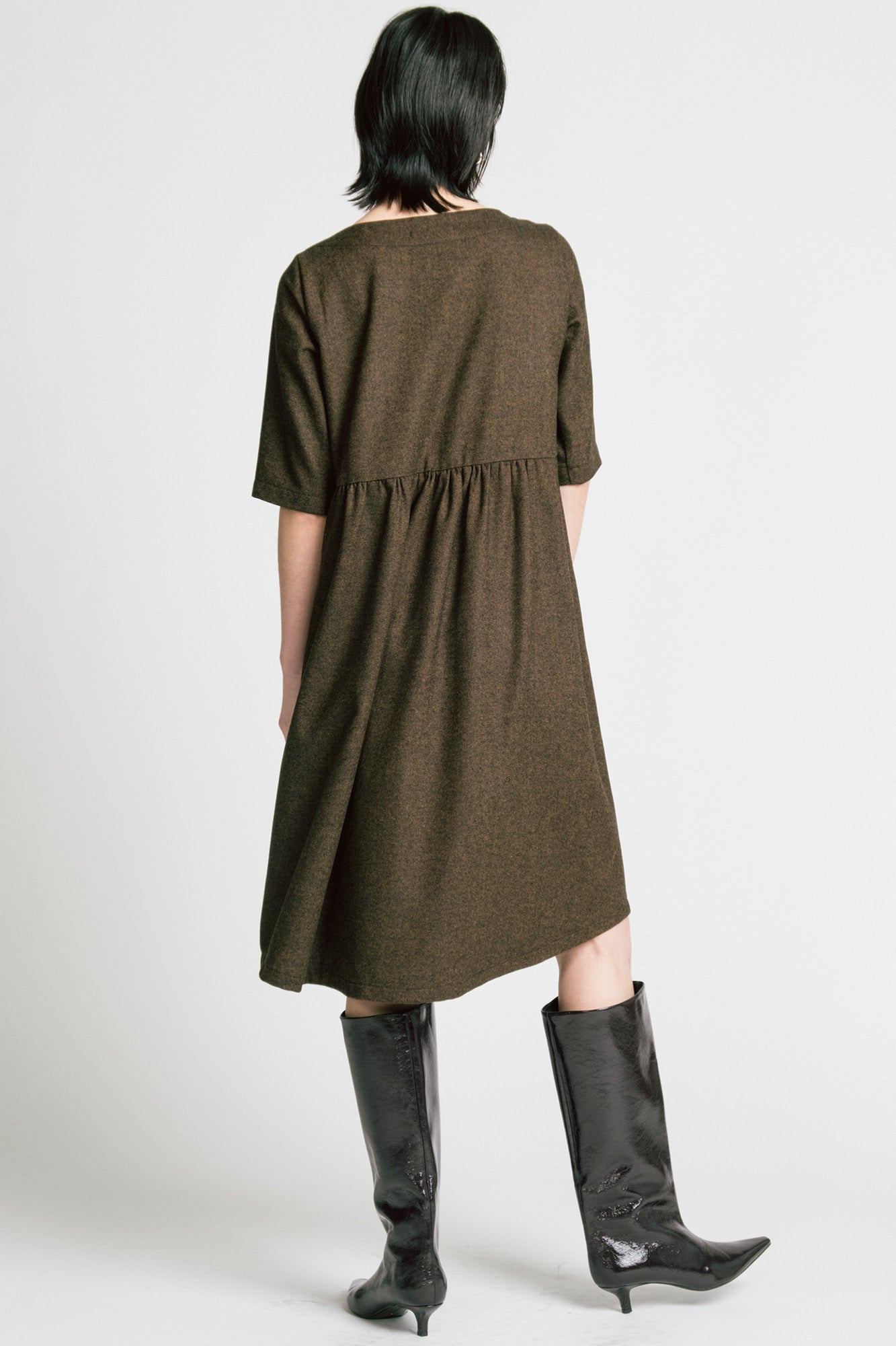 The Period Dress by Allison Wonderland will be your favorite dress this season. Easy to slip on, it features an empire waist and gathering at the front and back. The half sleeves fall just below the elbow and the skirt length falls just below the knee. This dress is ideal for layering and you can wear it longer!