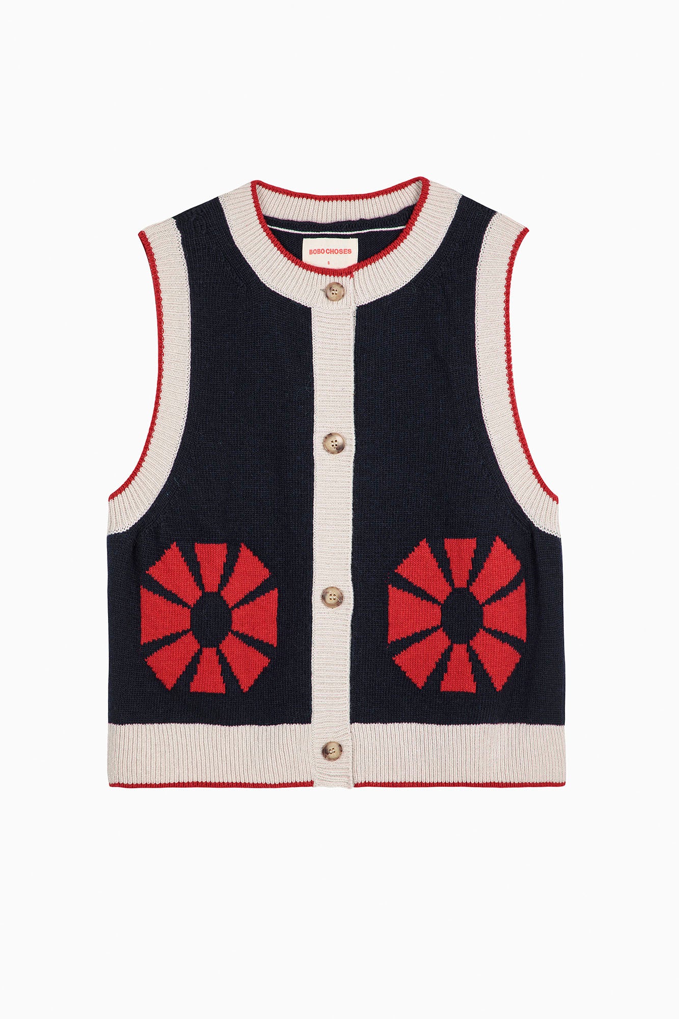 La veste Flower sans manches de Bobo Choses rehausse n'importe quel look. Boutonnée sur le devant et faite à partir d’un mélange de polyamide recyclée et de viscose, cette veste peut se porter ouverte en superposition ou seule en étant fermée.