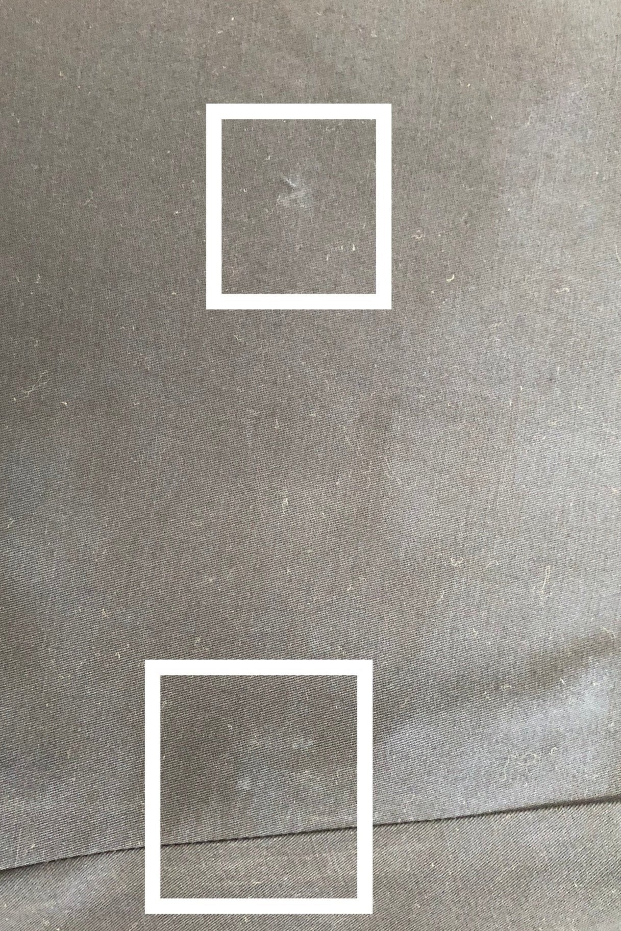 Défaut : Ceinture manquante, taches décolorées sur les fesses.