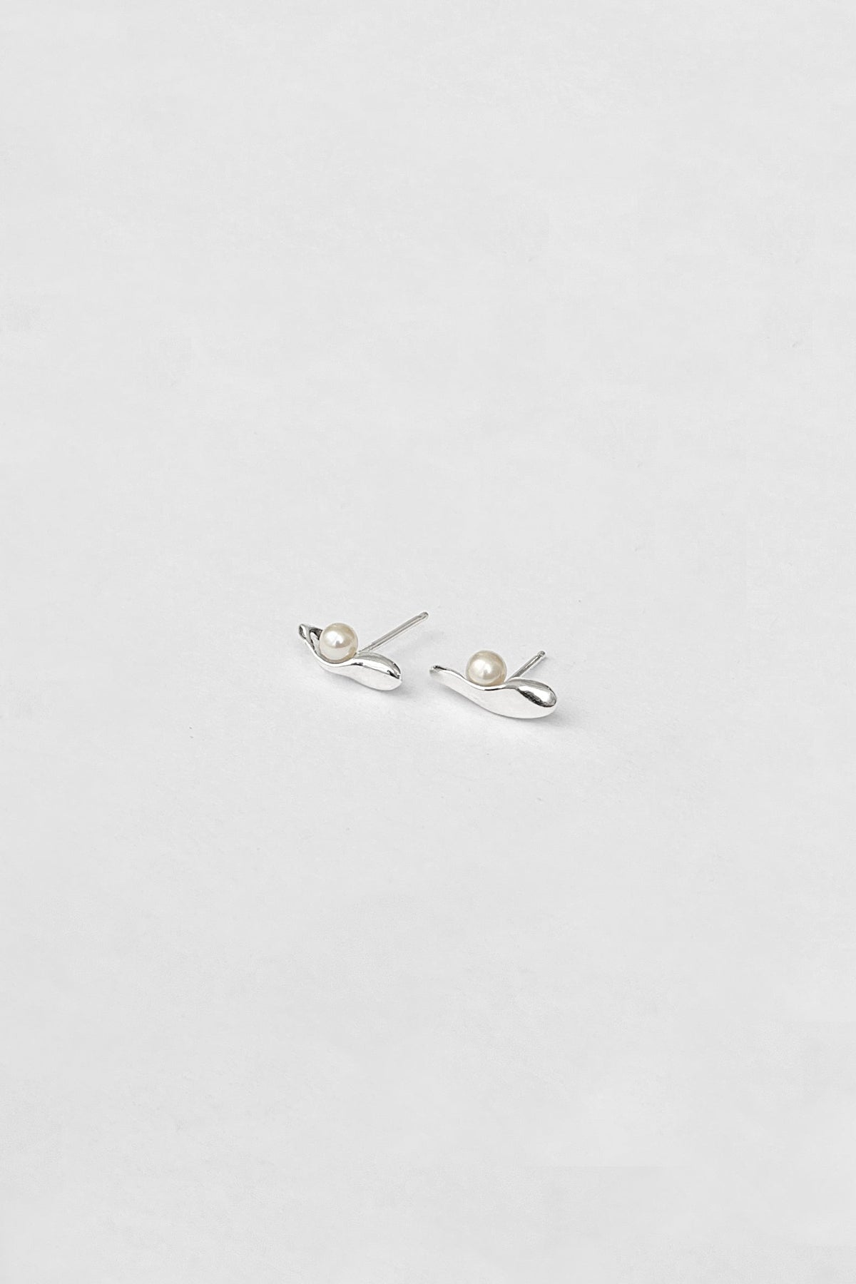 Une boucle d'oreille organique en argent sterling avec une perle partiellement cachée.