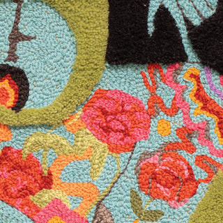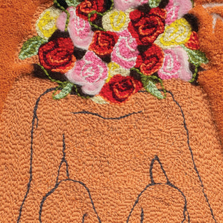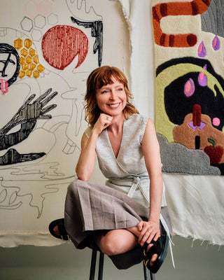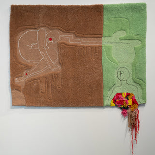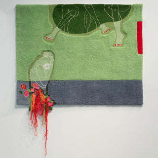 With the highest regard for human experience these works delve in to the torturous and tumultuous experience of inhabiting one’s own skin. Exploring universal themes of love, disdain, heartbreak, and joy, I seek to express the tensions and contradictions that define our shared humanity. Drawn in Quebec wool with meticulous hand punch needle and tufting gun I create planes in which the gaze can find a moment of rest, or be aroused, a universe where narratives emerge, unravel, and tumble away. Through planes of vibrant colour, or realms subsumed by silence, I invite the viewer to fall with me.