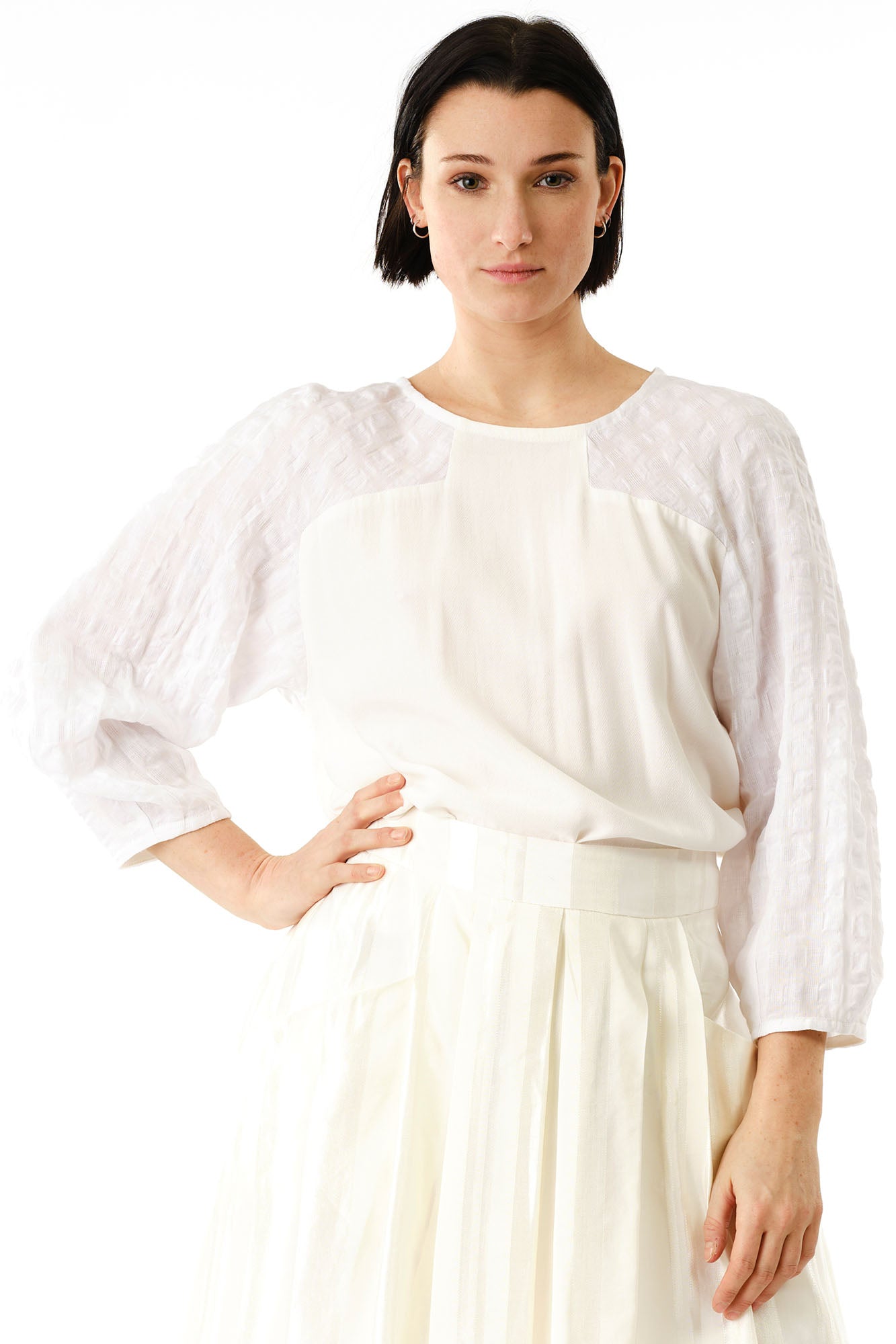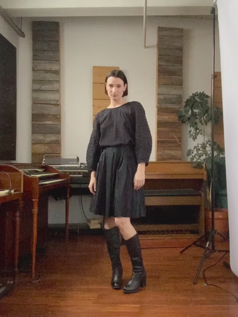 The Brigid blouse features a subtle play of sheer and textured fabrics on the sleeves, creating an elegant contrast of light and shadow. With a structured yet easy fit, and a delicate teardrop opening with a button at the back, she’s simple but striking. Inspired by the Celtic goddess Brigid, symbol of creativity and transformation, this blouse brings a touch of mythic grace to your wardrobe.